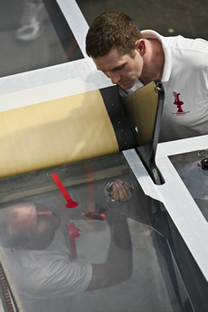 Scott Ferguson: Oracle Racing rig design team manager commented: “It’s been an amazing amount of work by a lot of people. It’s nice to see it all fit together so well and not on a computer screen. And it passed its first load test which is a huge tick off my list.“