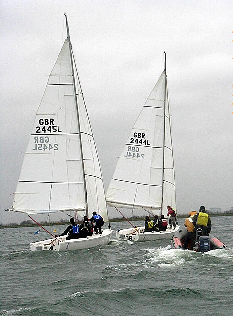 Sunday presented similar conditions - the wind had abated a bit but had been replaced with a colder breeze and some rain - but by now the RTYC’s Race Officials were accomplishing four races an hour. This enabled the round robin to reach its conclusion with RTYC undefeated at this stage, and Southampton University beating BUSA into second.