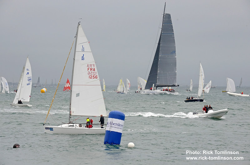 Despite the strong winds, 119 of the record 145 boats entered in the XOD class Centenary Regatta made the start line for their special Centenary Race Day, which was started on the Royal Yacht Squadron line by HRH The Princess Royal. The RYS starting platform was packed to an unprecedented density and crowds massed 10 deep on the waterfront, undeterred by the early morning rain.