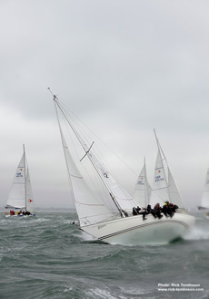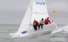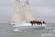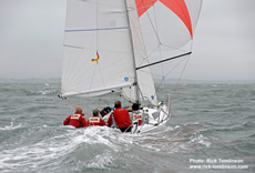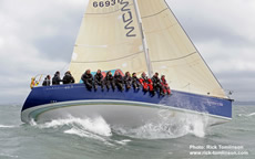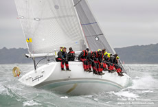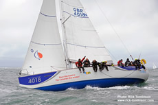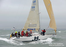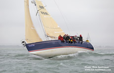 “It was a really exciting day, with a couple of enormous knockdown gusts of 31-32 knots just before our start,” said Liz Rushall whose boat Whiskers took a second win of the week in the Quarter Ton class. “We had a running start, but left the spinnaker in the bag. Even so, we hit 11.2 knots surfing in the eastern Solent. It was a super course for the conditions, with lots of reaches that made it quite safe sailing given the wind strength.”