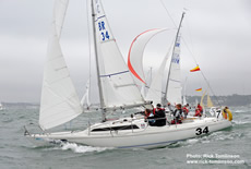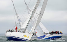 In Class IRC 3, Robin Lucas, Andrew Lax, Richard Heighton and Doug Pennycuick’s Swan 44 Bewick of Cowes attempted a port tack flyer at the inshore end of the line, but was forced to bear away behind the entire fleet. This left Bernard Olesinski’s X40 Xinska ahead of the pack closest to the inshore end of the line, followed by Woutjan Hermsen’s Ker 32 Luctor et Emergo ll. Gilles Caminade’s Archambault A35 Chenapan, was third off the line and first to tack onto port, followed by Xinska.