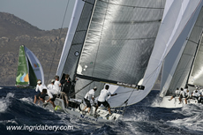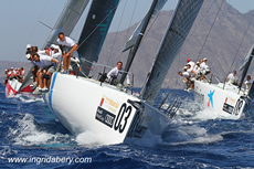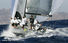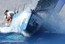 Kevin Sproul and the mainly British crew of Ngoni extended their lead in the Soto 40 fleet with a pair of back to back race wins and a second in their third race of the day, now standing five points ahead of the Audi MedCup Circuit leaders Iberdrola Team. In the close, tactical racing Tony Buckingham’s team were able to extend twice to solid wins, suffering slightly in the third race when a spinnaker twisted. But behind them the Spanish rivals Iberdrola and NH Resorts finish the second day of racing locked on 12 points apiece.