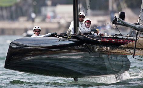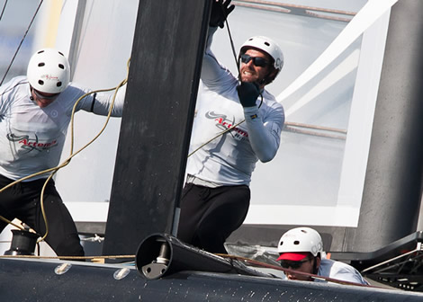 So how is Percy getting on with the new features of the America’s Cup World Series courses – the reaching starts, the course boundary lines, etc. “Like all aspects of this racing, we are learning fast. You never get your head fully around anything, but we are certainly on a steeper part of the learning curve than we would be on a traditional windward-leeward on a monohull. It is always fun when you are learning new things. We come across new lessons each day you put in the bank. In two years time all the teams will be racing in a more professional way, but it is a fun process trying to get there.”