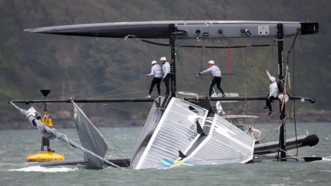 However with their hull slowly filling up with water, skipper Terry Hutchinson believed that this contributed to their capsize later on in the race. So how terrifying was that? “Not too bad...the capsize happened quite slowly.”