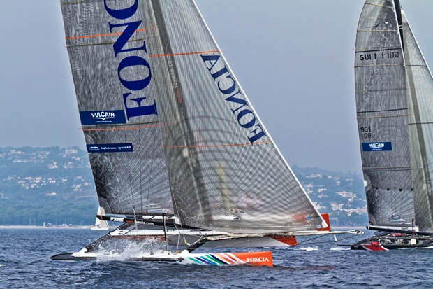 With his latest victory this weekend at the Grand Prix d'Antibes, Michel Desjoyeaux and his Foncia crew also won the Vulcan Trophy 2011 for the seven regatta D35 catamaran circuit.