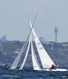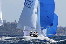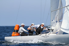 Moving back into second place is Australian team Iron Lotus (Tom King, Ivan Wheen, David Edwards and Owen McMahon) on 15 points. Then in third place are the Australian all-stars aboard Triad (John Bertrand, David Giles and Tom Slingsby) on 26 points. An Australian team also fills fourth place; Magpie (Graeme Taylor, Grant Simmer and Steve Jarvin).