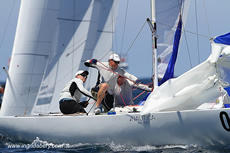 Roulette (Jud Smith, Mark Johnson and Nik Burfoot) now holds the lead on 13 points. The Roulette team is a coalition of talented sailors. On the helm is 2006 Etchells World Champion and American sailor, 54-year-old Jud Smith. On the sheets and braces is Australian Mark Johnson and on the foredeck, New Zealander Nik Burfoot. And the team’s coach is former Australian Olympic and America’s Cup coach, Mike Fletcher.