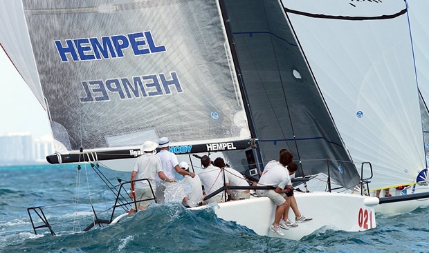 Day one at the 2012 Melges 32 Miami Championship delivered classic Miami conditions, as well as a steady stream of plentiful sunshine and warmth, setting the stage for three amazing races. Leading the overnight charge is Japan's Keisuke Suzuki on Swing. Jason Carroll's Argo is seated second and John Porter on Full Throttle is third.
