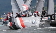His tactician Markus Wieser added: "For the guys on the boat it’s a big deal to do well here, we came out and sailed well, we were lucky in the second race with the big wind shift, but we were in the top of the fleet the whole race, we just had to play the wind shifts to get a good results. We had a lot of luck today too but we sailed well, much better than yesterday. There was a big thunderstorm come through at lunchtime and the breeze went up to nearly thirty knots so we had a delay until it passed and went down to under 20 knots and Peter [Reggio] was able to start the racing. We had a really nice first race between 13-15 knots and in the second race it dropped down to 10 – 14 knots until the rain came through were the breeze turned 180° and after that the wind was a messy 5 knots and tailing off."