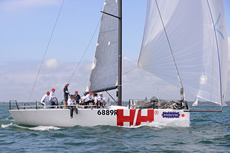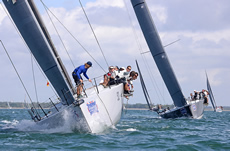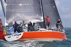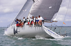 On the long final leg from Lymington Bank to the finish, a heading wind shift forced Pace to sail lower relative to the wind and therefore in a stronger adverse tide under an A3 asymmetric spinnaker. For a while it looked as though Powerplay, which deployed a FRO (a sail developed for the Volvo Ocean Race for use in exactly these conditions) would pull away from her older rival. She took line honours, but with Pace finishing just 49 seconds later Pace won on corrected time by more than a minute.