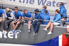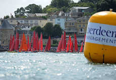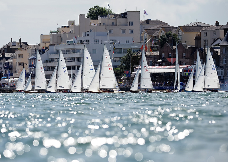 White Group dayboats that started from the Royal Yacht Squadron line headed towards the east, fighting an ebb tide. Despite this, a lot of boats were over the line at the gun, and two starts had to be recalled. At the other end of the spectrum were those who allowed themselves to be swept too far down tide of the start. Most of the successful boats started around one-third of the way out from the shore, where they gained some advantage from a weaker tidal stream but were also able to protect their air from other boats.