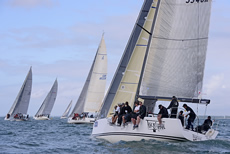 In the Sunsail F40 class the fleet was similarly spread evenly across the line, with Powell Systems Engineering winning the north end, although within a couple of minutes the Pip Hare skippered Cazenove Absolute powered over the top of her. Eden Yachting also showed good speed, but it was the boat that won the southern end of the start line, Dan Sanders’ Coast Graphics, that emerged as a clear early leader as the boats sailed south of the Beaulieu River on the way to Hamstead Ledge.