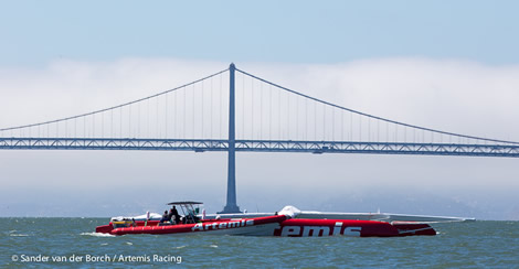 “We are all excited that the AC72 is here in San Francisco. We are looking forward to sailing this boat in the America’s Cup venue,” said Paul Cayard, CEO of Artemis Racing.