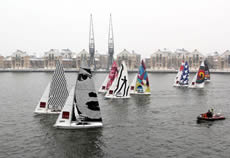 As the snow kept falling and in minus temperatures the scene better resembled the Winter Olympics than a sailing regatta, Xavier Rohart of France and Serge Pulfer of Switzerland took first place with 17 points at the inaugural CNM Estates UK Star Championship held on the Royal Victoria Dock at the London Boat Show.