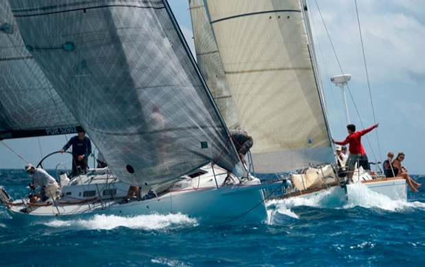 The Multihull 1-2 classes, and CSA 1, all competed on a 29.5 mile course that took them to a turning mark off Tintamarre before turning downwind into the Anguilla Channel; the other CSA 2-8 classes sailed a slightly abbreviated 22.5 mile race. The timing was such that the entire fleet converged on Blowing Rocks off the western point of Anguilla en masse.