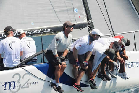 The tension before the start of the battle of the Melges proved too much for three yachts that were called back for jumping the gun, including local favourite James Plaxton at the helm of Melges 32 INTAC. However INTAC, with Canadian Star and Volvo Ocean Race sailor Richard Clarke calling tactics, recovered to win the first race of the day and score two second places to lead the class. Morgan Dale's Melges 24 Boogaloo won the second race to move into second place and Russian Valentine Zavadnikov's Synergy GT with Tommaso Chieffi on tactics, finished the day in style with a win to take third place.