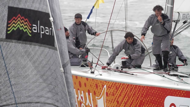 Pierre-Antoine Morvan’s Vannes Agglo Sailing Team took the top of the leaderboard with four wins from five matches on day one of the Korea Match Cup. However the only team to keep a clean sheet thus far was the reigning champion of the Alpari World Match Racing Tour, Ian Williams’ GAC Pindar, who scored three wins from three.