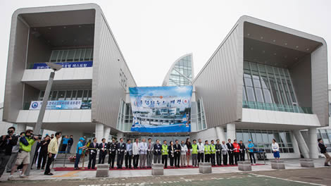 Today’s races began after a lavish opening ceremony attended by the Governor of Gyeonggi Province, Kim Moon Soo, the Mayor of Hwaeseong City, Chae In Seok, and Kim Yu-mi, Miss Korea 2012 and ambassador for the Korea Match Cup. Afterwards the brand new Jeongok Marina Clubhouse was officially opened, the latest step of many in the development of the Marina as a major destination for sailing and marine tourism in Asia.