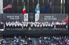 With the sailors of the four teams contesting the 2013 America’s Cup - Oracle Team USA, Emirates Team New Zealand, Luna Rossa Challenge and Artemis Racing - standing behind her, Lucy M. Jewett, recently elected to the America’s Cup Hall of Fame, brought the opening ceremony to a close by saying: “Let the racing begin.”
