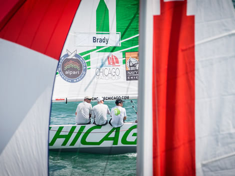 In a light and fluky start to Qualifying, local sailor and skipper from the Chicago Match Race Center, Don Wilson, beat last year’s regatta winner and reigning Alpari Tour World Champion, Ian Williams’ GAC Pindar. Australian qualifier, Jordan Reece and his Estate Master Sailing Team, pounced on an error by Adam Minoprio’s Team Alpari FX to sail into the lead on the second beat and win their opening match. And even after being six years away from the Tour, Gavin Brady and Team Vesper also managed to overtake their opponents, Bjorn Hansen and the eWork Sailing Team, who will expect better after winning last month’s Tour event, Stena Match Cup Sweden.