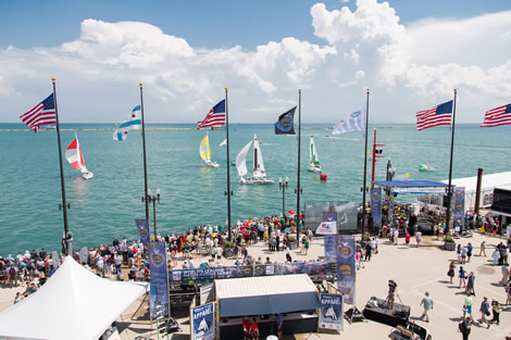 With the light wind swinging around all sides of the compass, and then a huge rainstorm arriving at midday, principal race officer Peter ‘Luigi’ Reggio had a tough time getting matches in. Even so, the twin attractions of the Chicago Match Cup and the presence of Tall Ships Chicago is set to attract close to a million spectators to the historic Navy Pier, the Windy City’s largest and most famous tourist spot, over the next several days of the event. Fourteen tall ships have sailed from various corners of the USA to meet at the Navy Pier this afternoon for a week of festivities. Between the old charm of the traditional wooden tall ships and the modern cut-and-thrust of world class match racing in Tom 28s, visitors to Chicago are getting a chance to experience the full spectrum of what sailing has to offer.