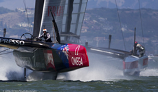 “When the speeds increase the margin for error steering and trimming becomes less; you have to work hard to keep the boat in balance,” said Kiwi skipper Dean Barker. “It’s cool sailing; you’re not going to have better sailing than this. Today was dead flat water, nice strong flood tide and good solid breeze. That’s about as good as it gets.”