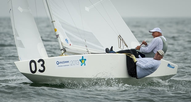 Local Gold Star Winner Vince Brun and Brian Terhaar rounded each mark solidly in the top of the fleet in today’s race and now lead the Qualcomm 2013 Star World Championship series.