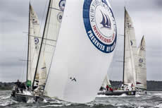 The expected conditions led the Race Committee to take the fleet north of the Pell Bridge to race between Gould Island and the western shore of Aquidneck Island where the teams – sailing identically equipped Swan 42s – faced breeze in the low teens gusting into the mid-20s and roaring current.