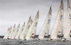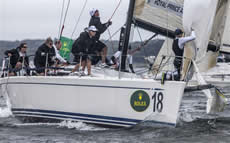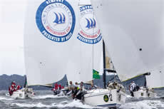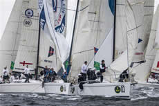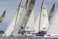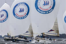 Leading the overall standings, on finishes of 2-2 for four points, is the Larchmont Yacht Club team from Long Island Sound.