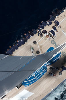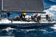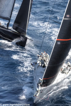 Niklas Zennstrom's team on the new Rán V continued her winning streak in the Mini Maxi class, claiming today's coastal race by a substantial margin of more than five minutes ahead of the former Rán, now Roberto Tomasini Grinover's Robertissima. In five races to date Rán V has won four and her lead is now unassailable in the Mini Maxi class going into tomorrow's final ace. Behind the fight for the remaining podium places is closer with Robertissima just two points ahead of Sir Peter Ogden’s newly acquired J-V72 Jethou with Andres Soriano's Alegre another point behind.