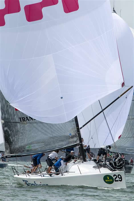 In the final race of the day, New York’s Alex Roepers on Plenty, won his fourth race of the series, and, with a 1-1-1-6-4-1 scoreline for 14 points, retains the top spot in the overall standings. Roepers holds a 19-point lead over three teams who are tied on points, including two Australians – 2011 Rolex Farr 40 World Champion Guido Belgiorno-Nettis on Transfusion and Lisa and Martin Hill on Estate Master – and Italy’s defending Rolex Farr 40 World Champion, Alberto Rossi on Enfant Terrible. Another Australian-flagged boat, Andrew Hunn’s Voodoo Chile, is fifth overall with 34 points.
