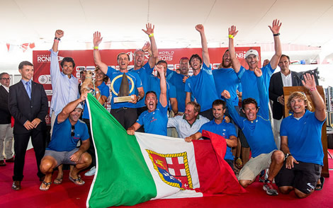 Rossi sailed this week the following crew: Vasco Vascotto on tactics (himself earning his 18th World Championship title in various classes), Francesco Di Caprio, Marco Carpinello, Matt Mason, Roberto Strappati, Massimo Gherarducci, Federico Giovanelli, Claudio Celon, Nicolas Dal Ferro, Daniele De Luca, Francesco Mongelli, Daniele Cassinari, and Samuele Niccolettis.
