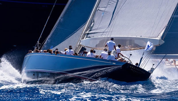 After a spirited, no holds barred match race which prevailed almost of the anti clockwise passage around the island of Saint Barths, during which there was never more than two or three boat lengths between the most established J Class rivals, it is the Velsheda crew which might impose their bragging rights over close rivals Ranger this evening. But that is only if they have enough remaining energy after the physically demanding head to head.