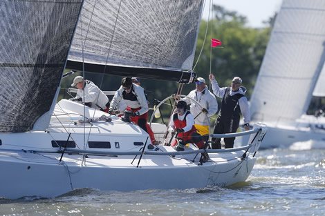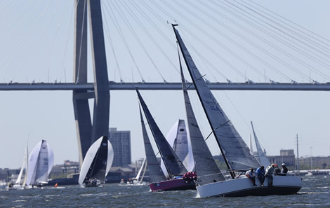 That solution was something never before tried at Sperry Charleston Race Week – a fourth inshore course inside the Wando River. “We weren’t sure it would work, but thanks to great communication between all the local agencies, every offshore boat got in three good races in perfect conditions in the river,” Draftz added. One offshore racer, Phil Garland who crewed aboard Steve Thurston's second- place J/29 Mighty Puffin, said that sailing north of the Cooper River Bridge was "just like frostbiting in Barrington (Rhode Island, from where the team hails). River sailing with current and tide just like back home – we all thought it was pretty cool.”