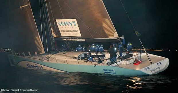 Rolex Sydney Hobart Race leaders Skandia and Zana rounded Tasman Island together at 11.45pm (12.45GMT 28 Dec) tonight. The boats are three minutes apart.