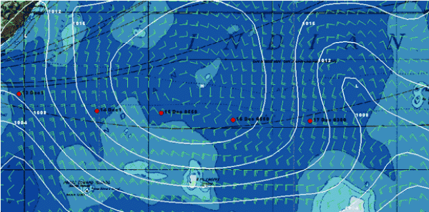 Francis Joyon has had yet another storming day. Over the 22 hours leading up to 0300 this morning he covered an impressive 425 miles. He is currently to the north of the Kerguelen Islands basking in the southwesterly winds associated with a high pressure system to his northwest.
