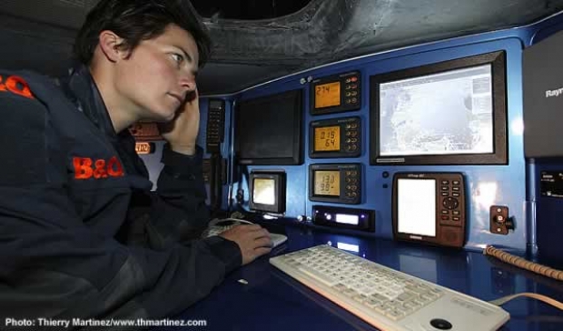 Aside from the big bows on B&Q Castorama enabling her to be driven harder downwind in a seaway than a 60ft trimaran could be, Ellen says that they also have made the ride much easier. "She is pretty resilient. She is completely not like a 60. In the Southern Ocean the boat was incredible. You expect to get hosed and frozen all the time but I sailed the whole Southern Ocean with only a splash top." [But with bottoms as well one hopes]. The bows do go into waves, she adds but there is no sense of planting the boat or going down the mine.
