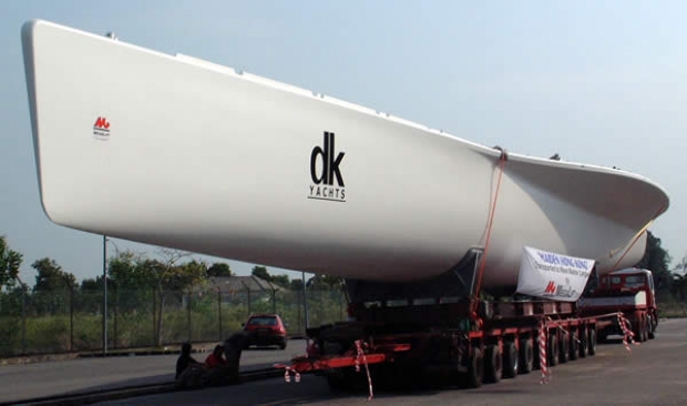 Maiden Hong Kong, the new 115ft long super-maxi for businessman Frank Pong, departed her builders DK Yachts in Malaysia by road, heading for Langkawi for commissioning. The boat is a design by Juan Kouyoumdjian. More on this in due course...