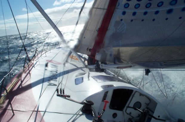 I opt to stick on the great circle and take a chance with the high pressure ridge that is forming out to the west of Ireland. I need to claw back the 20 miles lost to the leaders and this might give me a chance. The rest of the day is spent slamming to windward in 25 knots - not an expeience that is much fun on these boats - a case for taking the brain out and putting the "gum-shield" in!