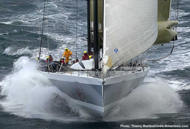 French photographer Thierry Martinez captured Mari Cha IV off northern Brittany as she was about to set out for her third Atlantic crossing.
