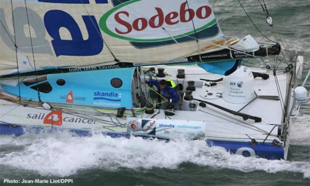 Skandia, he also set off on a ‘virtual race’ to raise funds for Sail 4 Cancer, Kilometres sailed versus funds donated.