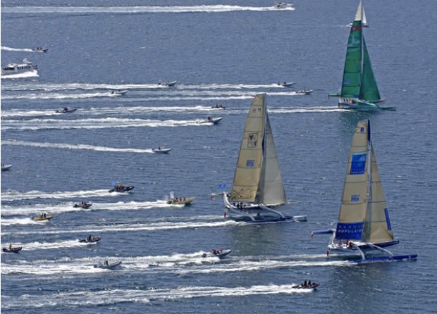 The six trimarans competing are Pascal Bidégorry who has taken over the helm of Banque Populaire, Franck Cammas on Groupama 2, Michel Desjoyeaux on Geant, Thierry Duprey on Gitana X, Armel Cléach who has taken over from Alain Gautier at the helm of Foncia and Fred le Peutrec on Gitana 11. Each boat is allowed to race with six crew and weather routing is prohibited.