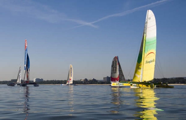 The multihull legend Bruno Peyron, co-skipper and boat owner Steve Ravussin and Roger Nilson, the navigator, consistently were way ahead of the other five competitors during Nokia Oops Cup 2005. In the St. Petersburg offshore race they had to endure light winds and high temperatures, but they still finished first in to the Russian city.