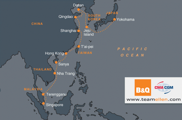 Today sees that first step towards establishing a series of 12 new records. CMA-CGM Shipping, who are the official Shipping Partner for the Asia Tour, will load the trimaran B&Q on to the container ship Bizet at Southampton today and start the 10,526 mile journey to Hong Kong.