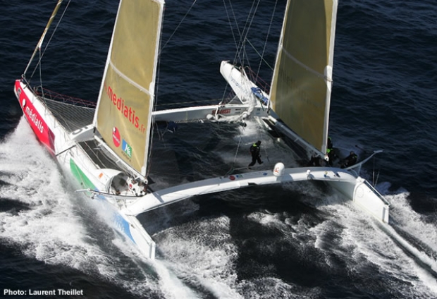 Médiatis Région Aquitaine officially started at 11:46GMT this morning and the target is to beat the 543 mile record held by Laurent Bourgon. In preparation Parlier has spent the last week training for this attempt. This he has been carrying out with the help of former Banque Populaire 60ft trimaran skipper Lalou Roucayrol. Prior to setting off this morning Parlier commented: " Médiatis Région Aquitaine is well prepared and the weather conditions are good. This attempt will be one of prudence. I will sail regularly, without pushing the boat too much…”