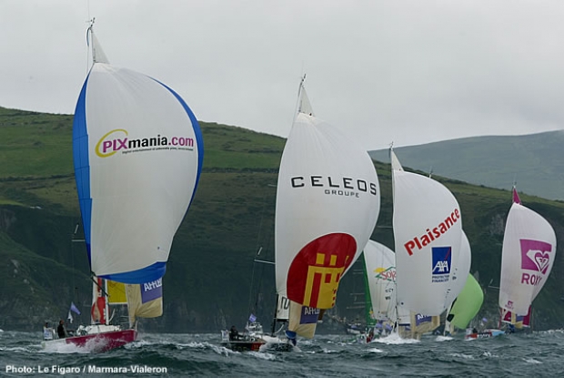 Everyone agrees; it is going to be fast and furious sailing for the first 24 hours of the fourth and final leg of La Solitaire Afflelou Le Figaro. The Figaro sailors left the comfort of Dingle Harbour for the 1400 (local time) start to face the 458 mile race to Concarneau in France. The skippers completed a short 4 mile inshore course, set in the Bay of Dingle, before rounding the final offset mark, the Radio France buoy, to head off Southwest in strong 20 knots of wind gusting 25 towards the Fastnet and on to the Scilly Islands.