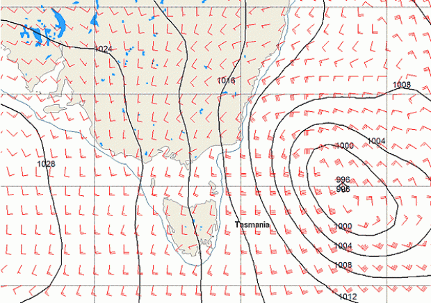 While the talk is of the weather moving off to the east, the standard GFS model is currently showing the depression in the Tasman Sea and high off the Great Australian Bight to be virtually static. This would an extremely bad scenario if it were to take place. Fortunately it is a long way out and thus likely to be highly inaccurate. Fingers crossed.