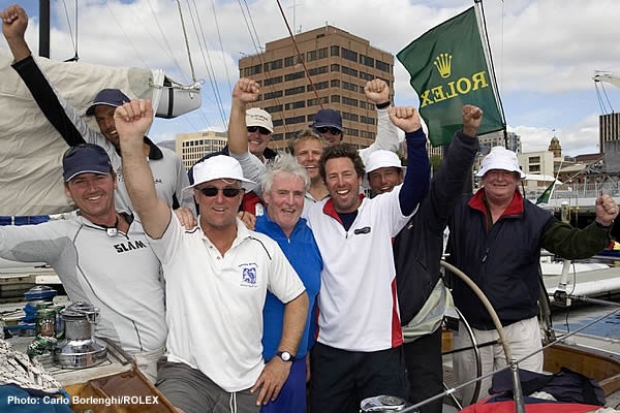 Prolonged upwind conditions experienced in the 2006 Rolex Sydney Hobart have resulted in one of the races most classic entries taking handicap honours. This afternoon at a ceremony on the pontoons at Hobart’s Constitution Dock, Geoff Lavis, Commodore of the Cruising Yacht Club of Australia, organiser of the Rolex Sydney Harbour presented the coveted Tattershalls Cup to this year’s winner, Lindsay May and his nine strong crew on the yacht