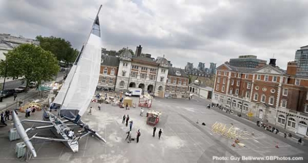 ‘Is it a bird? Is it a plane? Or is it a multihull?’ - installed at an angle in the courtyard adjacent to Tate Britain, the trimaran