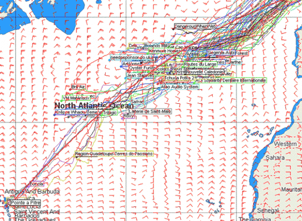 ATAO) and Joe Seeten is still not looking that flash. The skippers here continue to sail in light to moderae SSEerly winds and are awaiting the big shift which they are unlikely to see until tomorrow. |